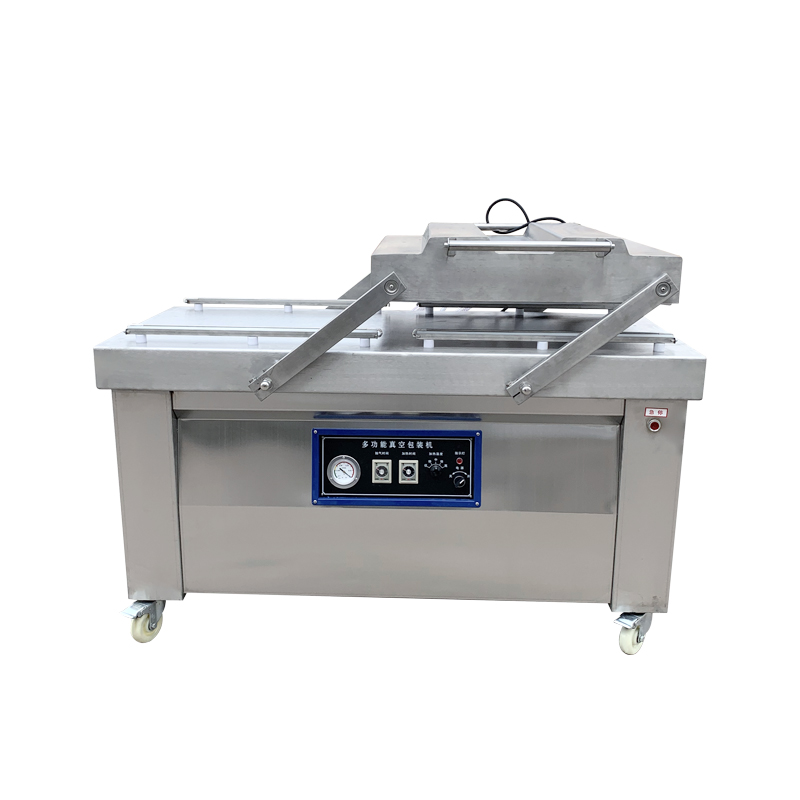 双室真空包装机式真空包装袋机器设备是十分普遍的一款包装设备,304不锈钢板做成,密闭性好,干净卫生美观大方经久耐用。合乎食品卫生安全与防腐蚀规定。